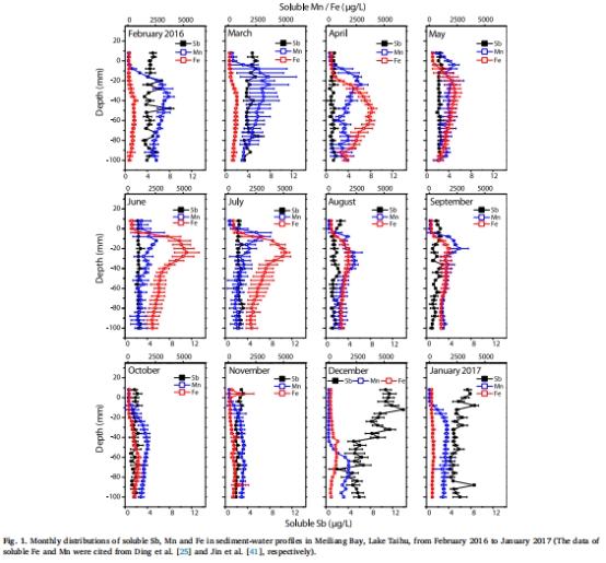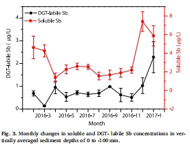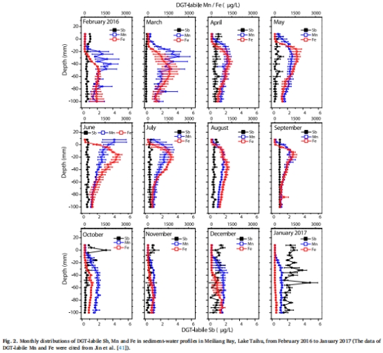 可溶性Sb和DGT-labile Sb的月度垂直分布: