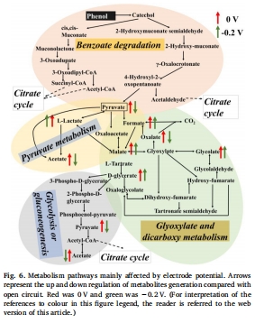 電位調(diào)控的深層機制在于上調(diào)了包括苯甲酸降解、丙酮酸代謝在內(nèi)的四條核心代謝途徑,改變了中間代謝產(chǎn)物的分布。
