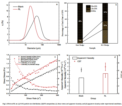 研究意義:表明RL提高污泥持水能力和抗剪切性,但降低結構重建能力,有利于有機質持續釋放。