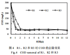 數(shù)據(jù):所有粒徑AGS對COD去除率均>80%,但R1(小粒徑)前期去除速率更快,R2和R3速率相近且較低。