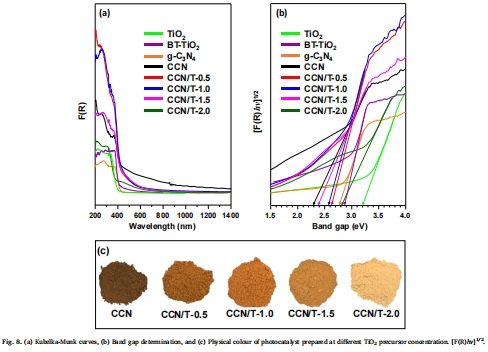數據:UV-Vis漫反射顯示所有樣品可見光吸收增強;帶隙計算表明CCN/T-1.5帶隙窄至2.38 eV。