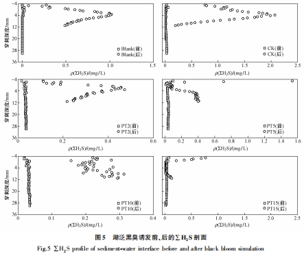 數據:黑臭組界面∑H?S顯著累積(濃度梯度明顯),PT15組無累積且無梯度。