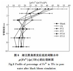 數據:黑臭前,PT10組DO穿透深度最深(13.4 mm);黑臭后,黑臭組界面DO降至0,PT15組仍保持1.7 mm穿透深度。