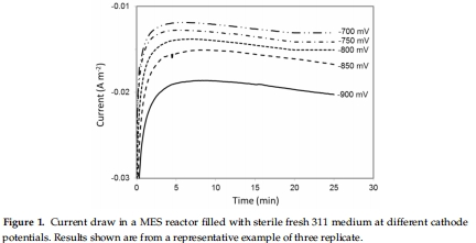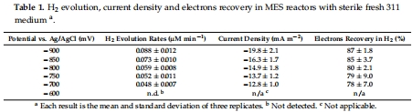 數(shù)據(jù):在無菌新鮮培養(yǎng)基中,H2在-700 mV起始演化,-900 mV時速率達(dá)0.58±0.03 μM/min,電流密度為-0.31±0.02 A/m2,電子回收率91.2±4.1%。