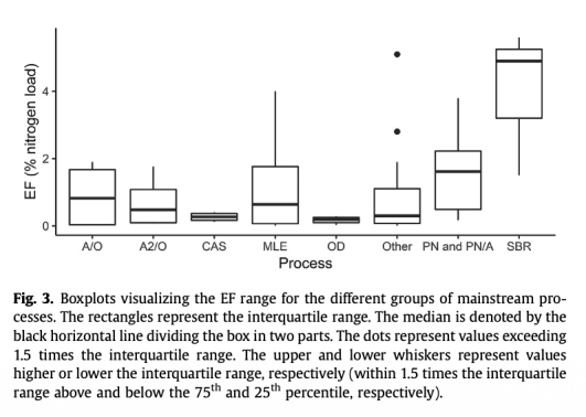 1 N2O排放因子數(shù)據(jù):來自Fig.2和Fig.3,顯示不同處理過程的排放因子范圍,如主流過程平均EF為0.87%氮負(fù)荷,側(cè)流過程平均為2.1%。研究意義是揭示排放變異性,強(qiáng)調(diào)操作條件和測(cè)量方法標(biāo)準(zhǔn)化的必要性,支持排放評(píng)估和機(jī)制研究。