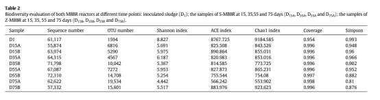 4 微生物群落數據:來自圖5和圖6以及表2,高通量測序顯示Z-MBBR中反硝化細菌(如Thermomonas、Flavobacterium)豐度更高,且微生物多樣性更豐富(如75天時ACE指數為833,高于S-MBBR的566)。研究意義是從微生物角度驗證新型載體促進功能菌群富集,增強系統穩定性和脫氮能力。