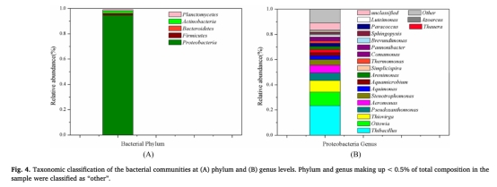 4 微生物群落數(shù)據(jù),來(lái)自Fig. 4。研究意義在于識(shí)別主導(dǎo)菌屬如Thiobacillus、Ottowia、Thiovirga,這些菌參與硫化物和亞硝酸鹽去除,Ottowia可能與N2O產(chǎn)生相關(guān),支持微生物機(jī)制解析。