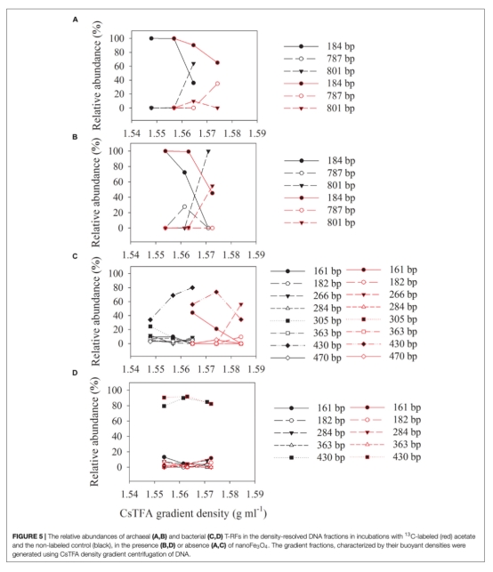 3 微生物群落分析數據:來自Figure 4、Figure 5和Figure 6。通過DNA-SIP和T-RFLP分析,顯示甲烷八疊球菌(Methanosarcina)是主要的產甲烷菌,且納米Fe3O4處理下Azonexus等細菌相對豐度變化。研究意義在于表明納米Fe3O4促進了特定功能微生物的富集,可能與電子傳遞相關。