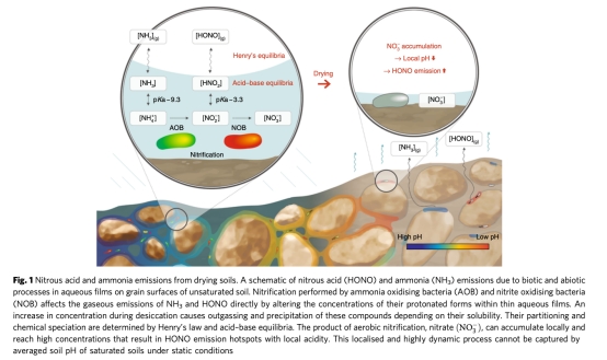 土壤和沙漠生物結(jié)皮干燥過(guò)程中的微觀pH變化影響HONO和NH3排放