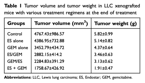 Antitumor effects of Endostar (rh-endostatin) combined with gemcitabine in different administration sequences to treat Lewis lung carcinoma