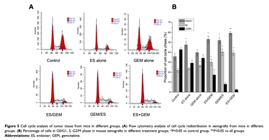 4 細(xì)胞周期數(shù)據(jù)來(lái)自圖5。ES+GEM組G0/G1期比例最高(59.16%),表明兩藥協(xié)同作用導(dǎo)致細(xì)胞周期阻滯。