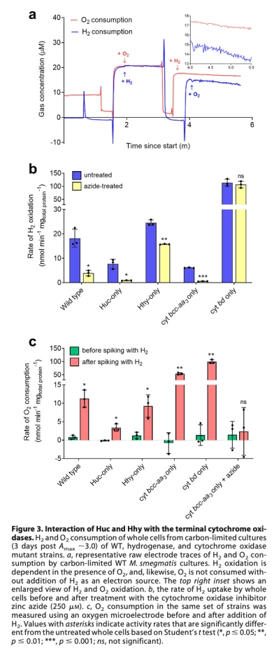 兩種攝取氫化酶在分枝桿菌生長和持久期間與需氧呼吸鏈差異互動