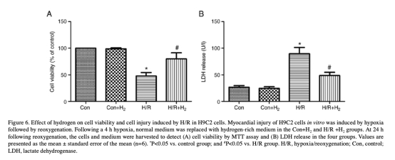 5 細胞活力和LDH釋放數據來自圖6。研究意義是評估細胞毒性,氫提高H9C2細胞活力并減少LDH泄漏,說明氫減輕細胞損傷。