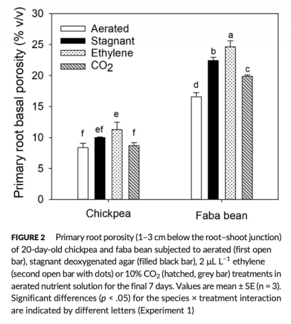 4 蠶豆比鷹嘴豆更耐受低氧,由于根系孔隙度較高且內(nèi)部氧氣流動(dòng)更順暢。