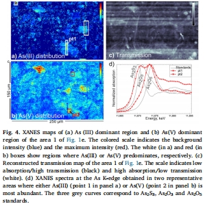 砷形態(tài)與價態(tài)分析:核心部分使用同步輻射X射線近邊吸收譜(XANES)進行點分析和成像,繪制As(III)和As(V)的分布圖(Figure 4),直接揭示砷的氧化還原狀態(tài)及其微觀尺度的異質(zhì)性。