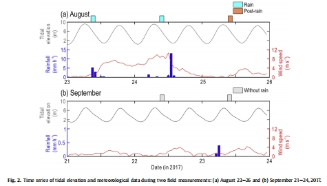 沉積物可蝕性:降雨條件下,沉積物可蝕性顯著增加,總侵蝕質量比無雨條件高37-86%,表明降雨擾動了表層沉積物。雨后,高可蝕性沉積物被移除,侵蝕質量減少。