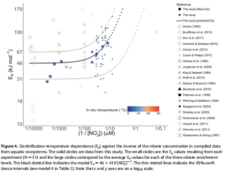 偏遠、寒冷、貧氮湖泊沉積物的反硝化與溫度之間的相關依賴性