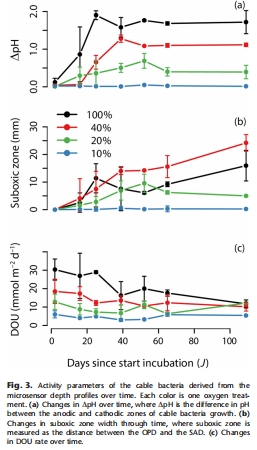 氧氣閾值:電纜細(xì)菌在10% O2下無法發(fā)育,但在≥20% O2時均能生長并保持活性。
