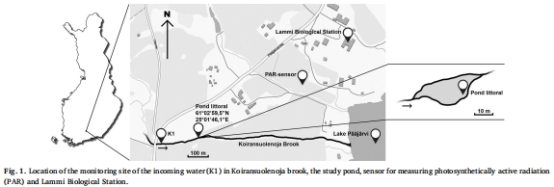 站點(diǎn)選擇:在芬蘭南部農(nóng)業(yè)流域(Koiransuolenoja溪流)的構(gòu)建池塘(圖1)進(jìn)行實(shí)驗(yàn),該池塘接收高氮負(fù)荷(NOx-N平均194 μmol L?1)。