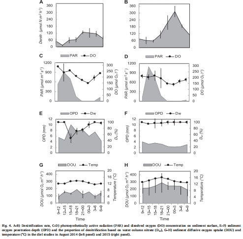 調(diào)控機(jī)制:日變化受光照和氧氣主導(dǎo)(光照抑制反硝化),季節(jié)性變化受溫度、氧氣和濁度共同控制。