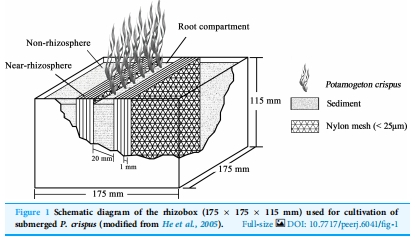 實驗設計:使用三室rhizobox(根區、近根際5亞區、非根際)培養P. crispus,模擬根際微環境(Fig. 1)。