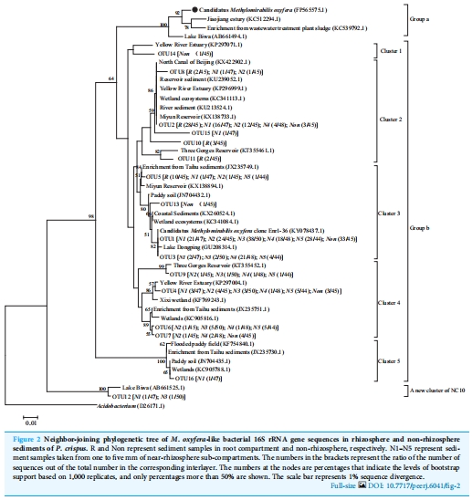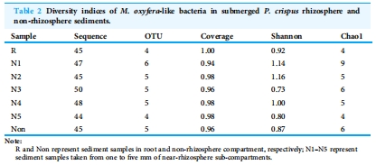 根際存在證實:M. oxyfera-like細菌在P. crispus根際沉積物中普遍存在,表明沉水植物根際是N-DAMO過程的潛在熱點。