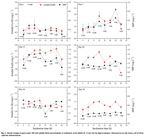 4. 孔隙水SRP和可溶性Fe(II)每小時變化數(shù)據(jù)(來自 Fig. 5)