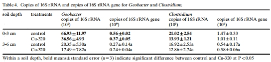 數據:320 mg/L Cu2?抑制表層土壤中地桿菌(16S rRNA下降45%)和梭菌(活性下降34%)的豐度與活性,但深層土壤無顯著影響。