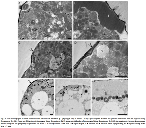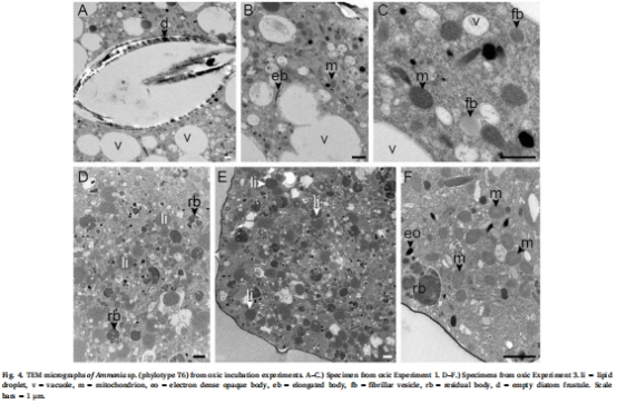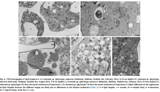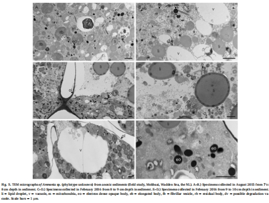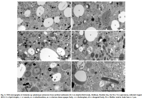 比較從自然環境中(荷蘭瓦登海含氧和缺氧沉積物)采集的Ammoniaspp. 的超微結構差異。