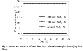 數據:NPyr生物過濾器實現完全硝酸鹽去除(30.24 mg NO?-N/(kg NPyr·d)),無亞硝酸鹽積累。