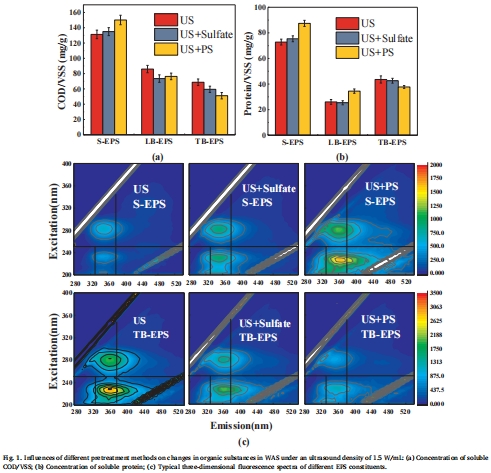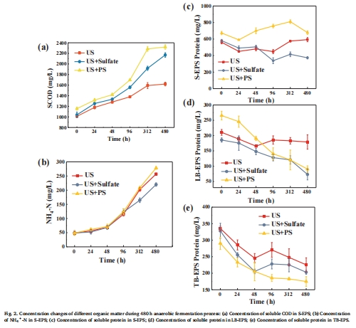 優化厭氧發酵性能:比較不同預處理(US、US+PS、US+Sulfate)對EPS組成、有機溶解、VFA和氫氣生產的影響。