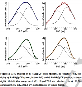 數據:Ru 3d峰顯示金屬Ru(279.8 eV)和RuO2(280.8 eV)相,表明NPs表面部分氧化。