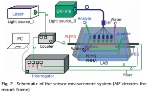 系統集成:將PLPFG、聚合物膜、FBG(溫度補償)、錐形紫外光纖陣列(光激發)封裝在PMMA/PDMS芯片中(Fig. 2)。