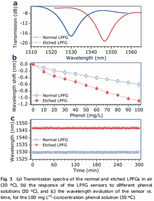 研究意義:驗證薄化增強倏逝場相互作用;但單純LPFG靈敏度不足(酚RI變化小),需光催化放大信號。
