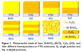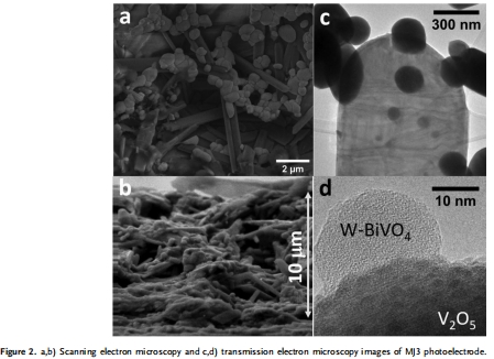 鎢摻雜BiVO4的光陽極作為光吸收體和空穴載體與V2O5電極耦合,具有良好的水氧化性能
