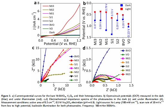研究意義:V?O?耦合顯著提升光電流,歸因于Type-II異質結促進電子-空穴分離;多結結構(MJ3)優(yōu)化電荷傳輸路徑。