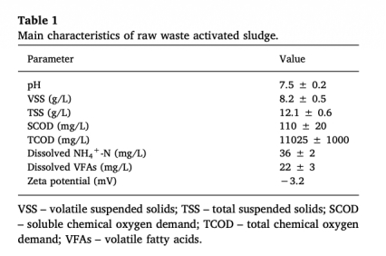 5 測量了污泥基本特性,如pH、揮發性懸浮固體、總懸浮固體等,數據來自Table 1。研究意義是提供污泥初始狀態基準,用于比較預處理效果。