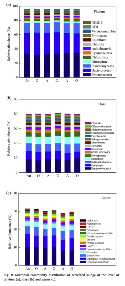 摘要部分闡述了本研究評估了恒定流量多級缺氧好氧(AO)工藝中的氮去除和一氧化二氮(N2O)排放。研究了溶解氧(DO)、碳源和投加模式對N2O排放的影響。氨氮和總氮的去除率分別為99.8%和74.1%。有限的DO、有機碳的存在和高亞硝酸鹽濃度增強了硝化過程中的N2O排放。亞硝酸鹽的內(nèi)源反硝化顯示出高N2O排放潛力,尤其是一次性投加亞硝酸鹽時。編碼N2O還原酶的nosZ基因廣泛分布于變形菌門(39.6%)、β-變形菌綱(31.6%)和羅爾斯通氏菌屬(20.0%)。研究表明,硝化過程中高DO濃度和不存在有機碳、反硝化過程中避免內(nèi)源亞硝酸鹽反硝化以及恒定投加操作模式都有利于最小化N2O排放。