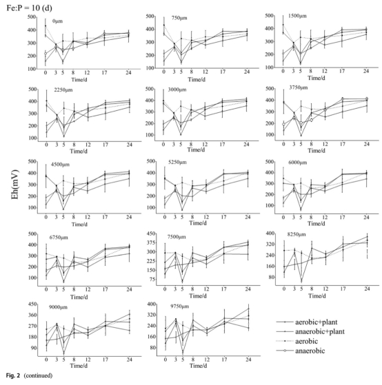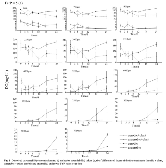1 溶解氧濃度和氧化還原電位數(shù)據(jù):來自圖2,顯示不同土層深度和時(shí)間的動(dòng)態(tài)變化。研究意義是這些數(shù)據(jù)揭示人工通氣如何改變土壤微環(huán)境氧化還原條件,直接影響鐵和磷的轉(zhuǎn)化過程,如好氧條件促進(jìn)磷沉淀。