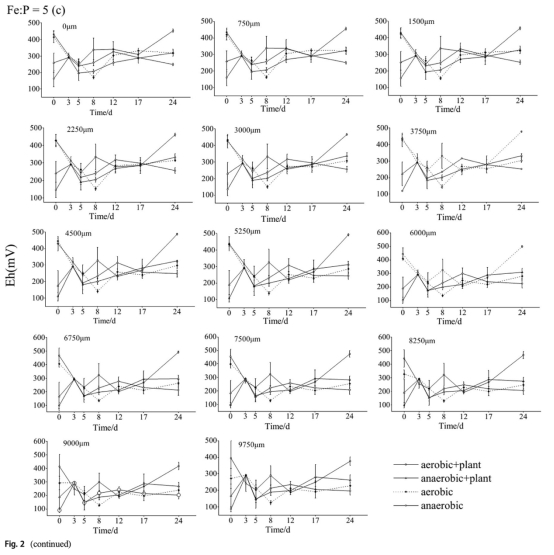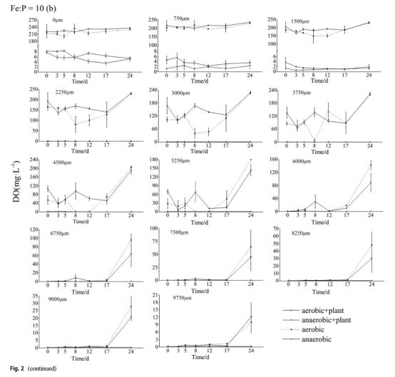 摘要闡述了本研究探討人工通氣和鐵輸入對(duì)濕地土壤中碳和磷轉(zhuǎn)化的影響。人工通氣改變土壤表面氧化還原條件,而鐵輸入在波動(dòng)氧化還原條件下影響碳和磷循環(huán)。通過比較好氧和厭氧條件,研究發(fā)現(xiàn)鐵添加能影響磷形態(tài)和有機(jī)碳耦合,但這種效應(yīng)依賴氧化還原條件。實(shí)驗(yàn)設(shè)置不同F(xiàn)e/P比(5或10)和溶解氧濃度(高>6 mg/L,低<2 mg/L),監(jiān)測(cè)溶解氧、氧化還原電位及元素變化。結(jié)果表明,溶解氧濃度分層,隨土壤深度減少而隨時(shí)間增加;氧化還原電位波動(dòng)升高。鐵結(jié)合磷占總磷45%,表明湖泊具有高內(nèi)部磷負(fù)荷。鐵添加影響元素循環(huán),但過量鐵可能導(dǎo)致環(huán)境風(fēng)險(xiǎn)如富營養(yǎng)化。