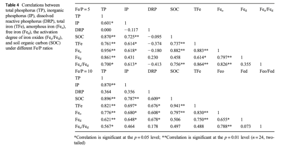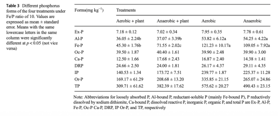3 鐵含量數(shù)據(jù):來自圖3,包括總鐵、無定形鐵和游離鐵含量。研究意義是鐵氧化物轉(zhuǎn)化影響磷吸附能力,無定形鐵與有機(jī)碳相關(guān),表明鐵在碳穩(wěn)定中的作用。