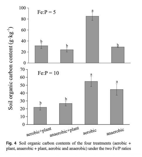 4 土壤有機(jī)碳數(shù)據(jù):來自圖4,顯示不同處理下有機(jī)碳含量。研究意義是好氧條件下有機(jī)碳增加,表明鐵氧化物可能通過共沉淀穩(wěn)定有機(jī)碳,增強(qiáng)濕地碳匯功能。