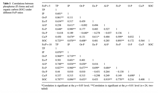 5 元素相關(guān)性數(shù)據(jù):來自表4和表5,顯示鐵、磷、碳元素間的相關(guān)系數(shù)。研究意義是揭示元素耦合機(jī)制,如鐵與有機(jī)碳正相關(guān),說明鐵輸入可能促進(jìn)碳封存。