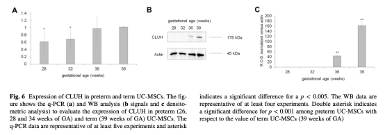6 CLUH表達(dá)數(shù)據(jù):mRNA和蛋白水平,來(lái)自圖6。研究意義是CLUH表達(dá)隨孕齡增加,調(diào)控線粒體功能。