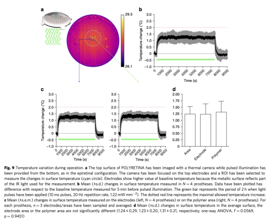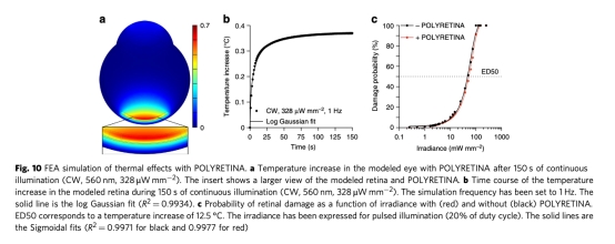 7 熱安全數據:來自圖9和圖10,顯示在最大 irradiance 下,溫度升高僅1.25°C,低于安全閾值。研究意義是確認假體符合熱安全標準,不會造成組織損傷。