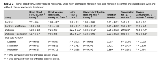 3. 腎血流、GFR、鈉轉運和氧消耗 [來自表2] - 研究意義是顯示糖尿病增加腎血流和代謝活性,但二甲雙胍不改變這些參數,進一步支持其效應不依賴于血流動力學或過濾功能變化。