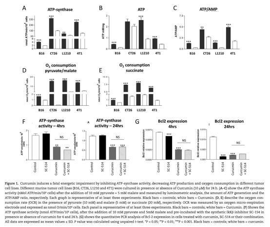 研究目的是探討姜黃素對腫瘤細胞能量代謝的影響,特別是是否通過抑制ATP合酶活性導致能量損傷,從而抑制腫瘤生長,并區分其是否獨立于已知的NFkB抑制途徑。