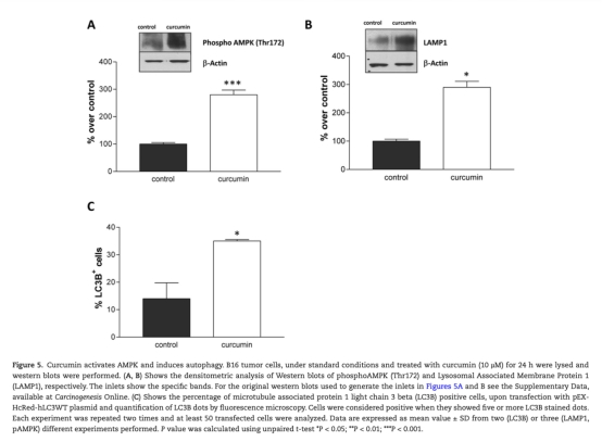 結論是姜黃素通過抑制ATP合酶活性導致腫瘤細胞能量損傷,獨立于NFkB抑制,引發氧化應激、凋亡和自噬。在體內,姜黃素延遲腫瘤生長,部分由于能量損傷和抗血管生成效應。姜黃素可作為熱量限制模擬物,通過代謝干預抑制腫瘤。