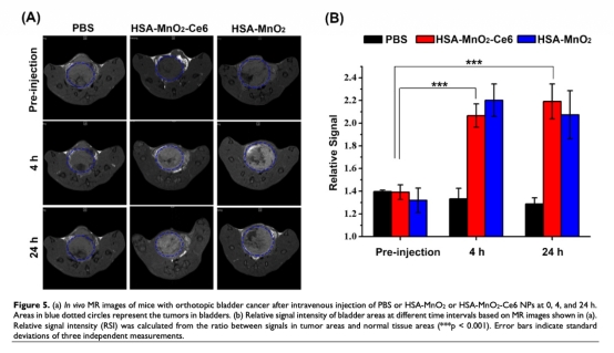 6 來自圖5a和5b:磁共振成像顯示注射NPs后膀胱癌區(qū)域的T1信號(hào)增強(qiáng),且在pH 6.5時(shí)信號(hào)更強(qiáng)。研究意義是表明NPs能作為MRI對(duì)比劑,用于腫瘤診斷和治療監(jiān)測(cè)。