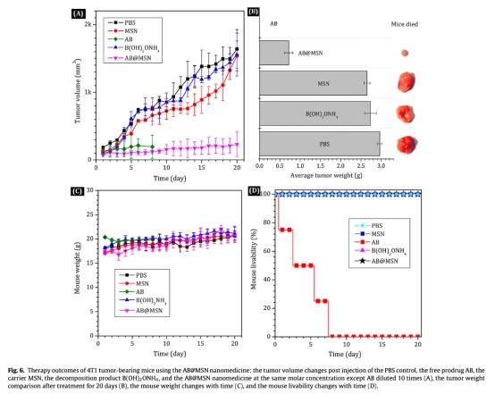 基于氨硼烷負載的介孔二氧化硅納米藥物的腫瘤內高負載遞送和酸響應釋放氫氣用于高效癌癥治療